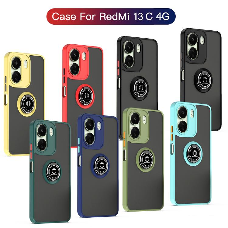 Funda de TPU + PC con anillo para Redmi 13C 4G Q Shadow 1 Series (verde militar)