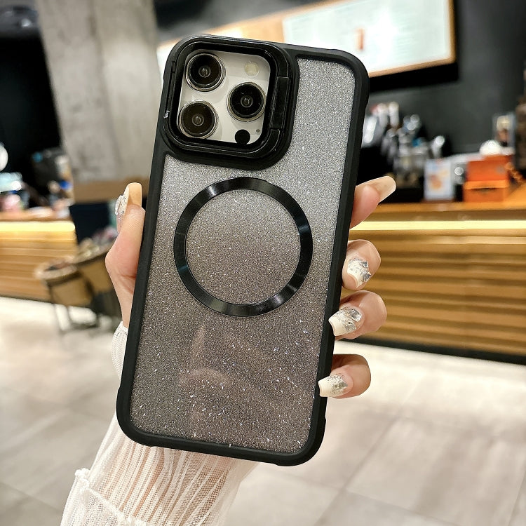 Funda híbrida Acrílico TPU con Purpurina y Degradado Grano de Cd para iPhone 16 Pro (Negra)