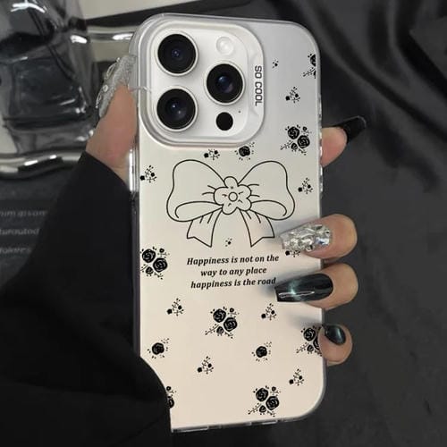 Funda Híbrida TPU iPhone 14 Pro Max Pintura Plateada Lazo Floral Blanco