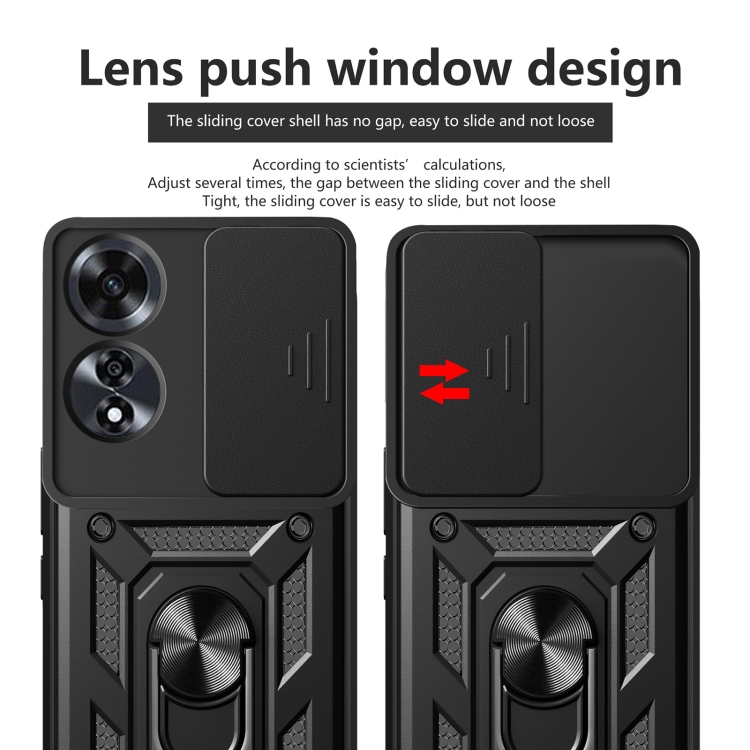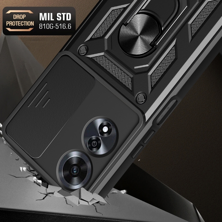 Funda Híbrida de TPU y PC con Diseño de Cámara Deslizante para Oppo A60 4G (Dorada)