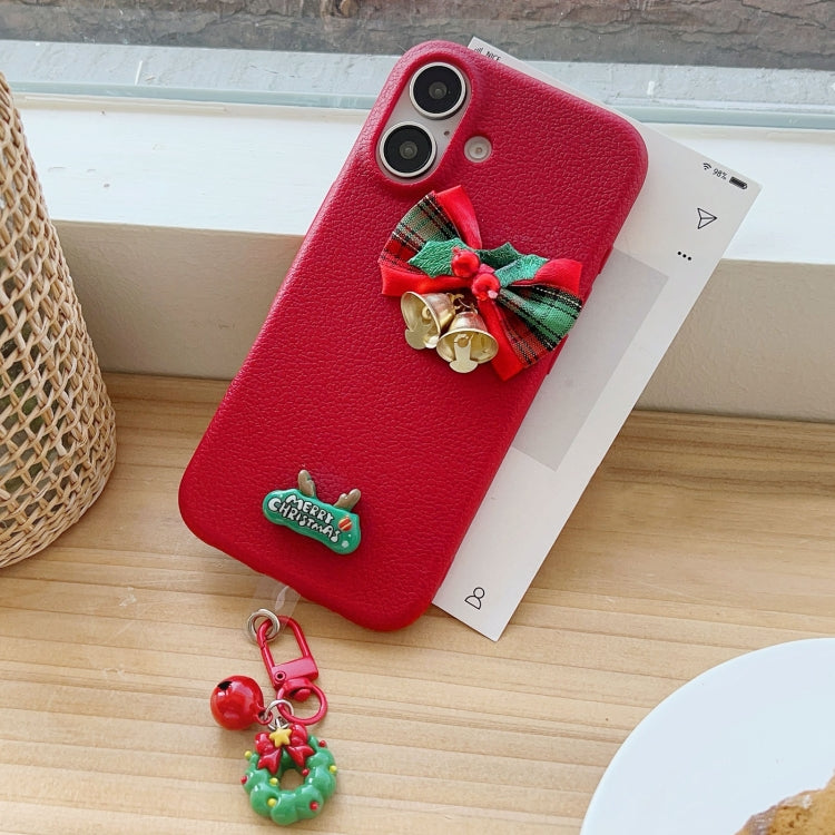 Funda híbrida TPU y PC iPhone 16 diseño campanas navideñas (Roja)