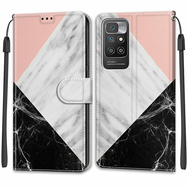 Funda Magnética de Dibujo de Color de Voltaje Funda de Cuero Horizontal Flip Pu con Soporte y Ranuras para Tarjeta para Xiaomi Redmi 10 (C07 Rosa Blanco Negro)