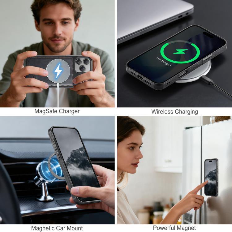 Funda magnética MagSafe AutSpace A05 2 en 1 con textura de piel de becerro retro para iPhone 17 Pro Max (negra)