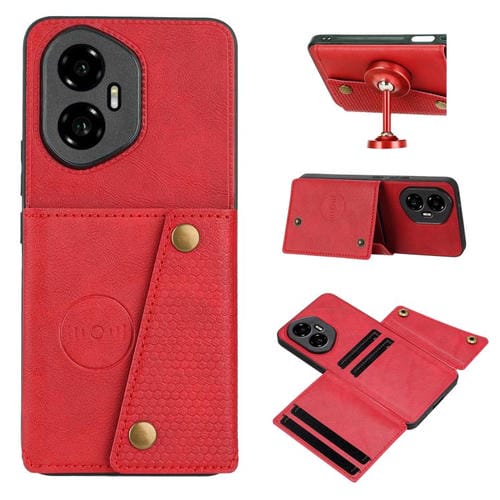 Funda Magnética para Honor 300 con Ranuras para Tarjetas y Doble Hebilla (Rojo)