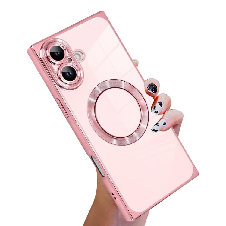 Funda MagSafe de TPU con patrón de CD electrochapado cuadrado y ángulo recto para iPhone 17 (rosa)