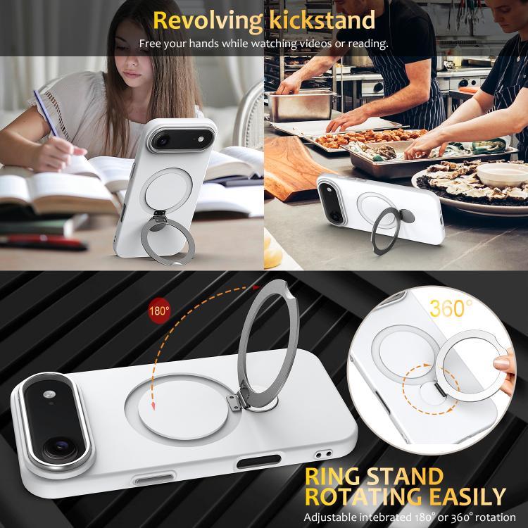 Funda MagSafe híbrida de TPU y PC para iPhone Air Gen1.5 con soporte de anillo pivotante (blanca)