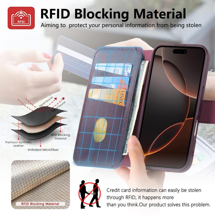 Funda Neo de cuero con correa de agarre para el dedo MagSafe para iPhone 17 Pro Max (morada)