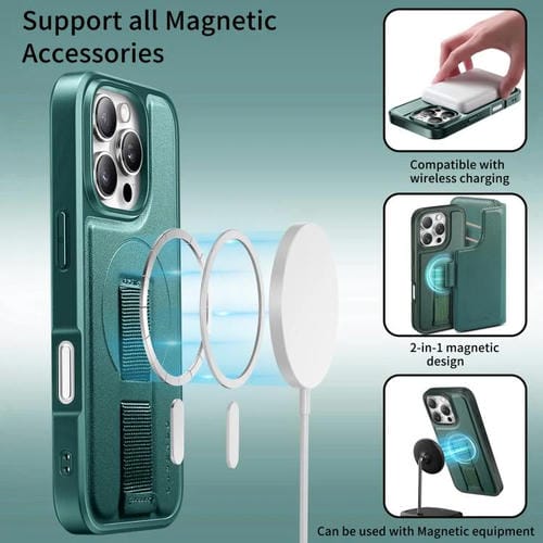 Funda Neo de cuero con correa de agarre para el dedo MagSafe para iPhone 17 (verde)