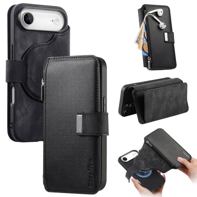 Funda Neo MagSafe RFID antirrobo con cremallera para iPhone Air, funda de cuero retro (negra)