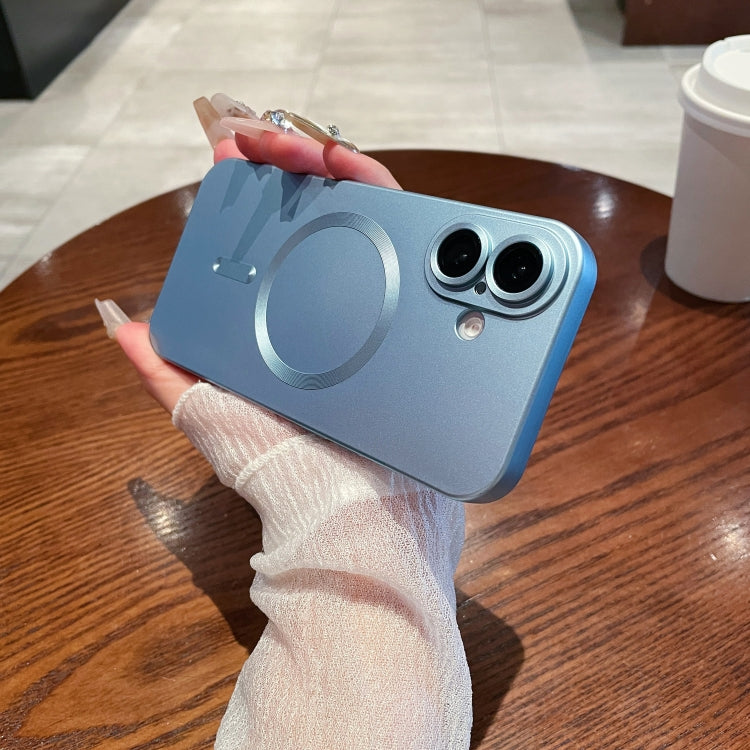 Funda para iPhone 16 con Pintura Metalizada y Líquido Magsafe (Azul)