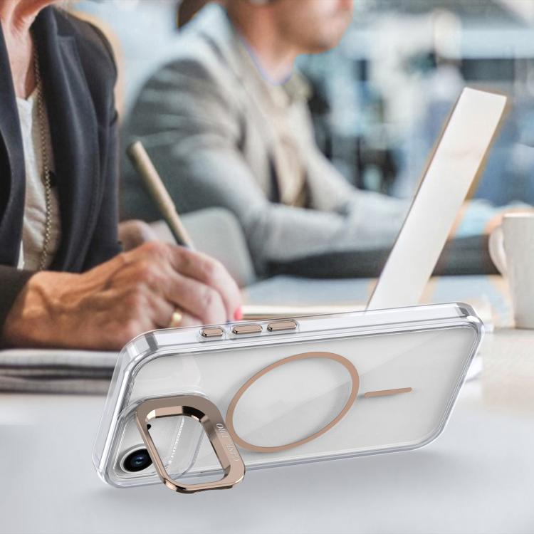 Funda para iPhone 16e con marco de lente MagSafe transparente y brillante (blanco)