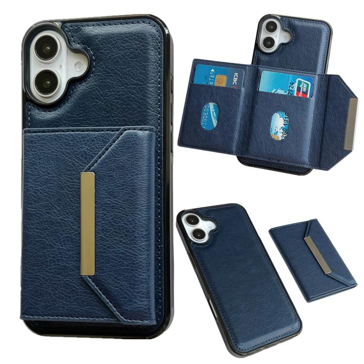 Funda para iPhone 17 con hebilla metálica de color sólido y ranuras para tarjetas (azul)