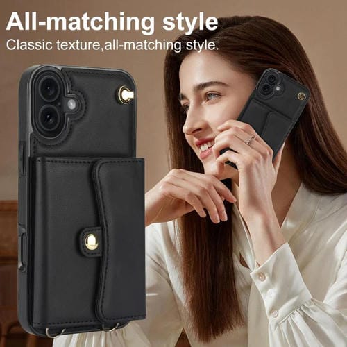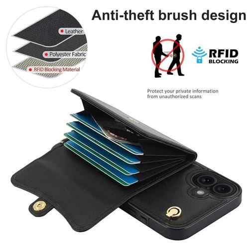 Funda para iPhone 17 con ranura para tarjeta RFID y cordón largo (negra)