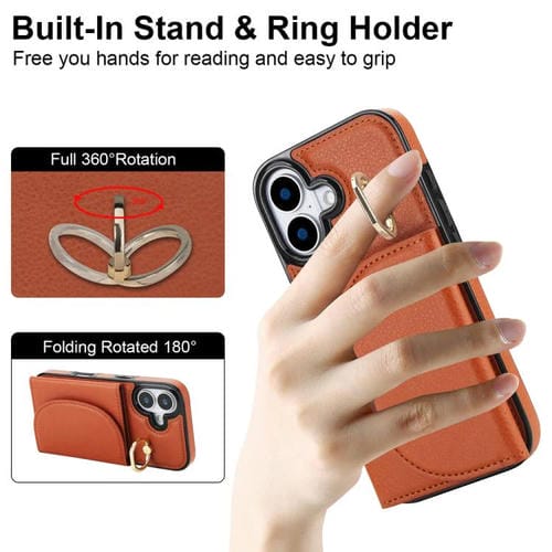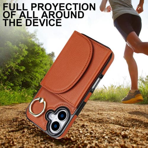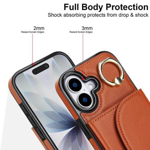 Funda para iPhone 17 con tarjetero y anillo, tacto suave (marrón)