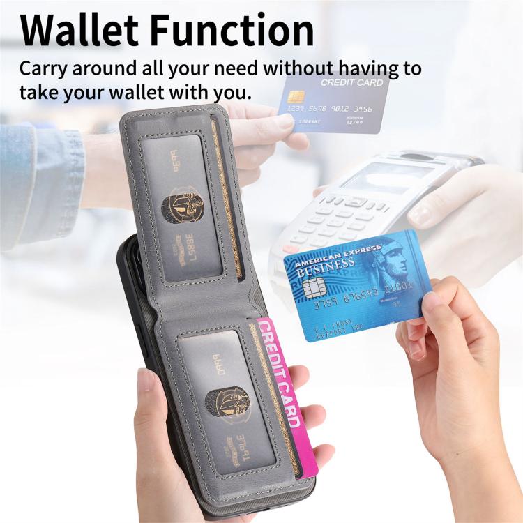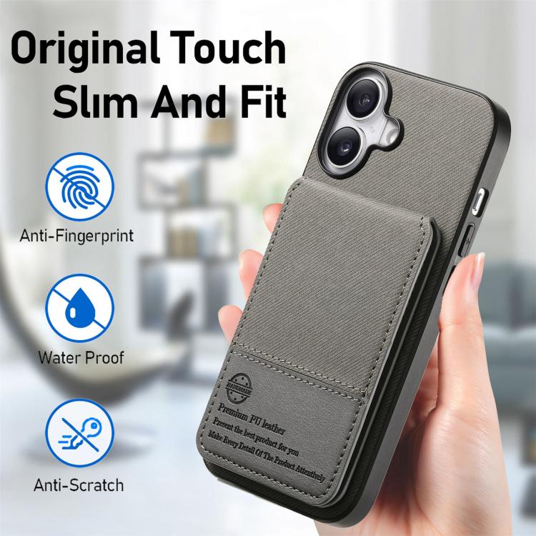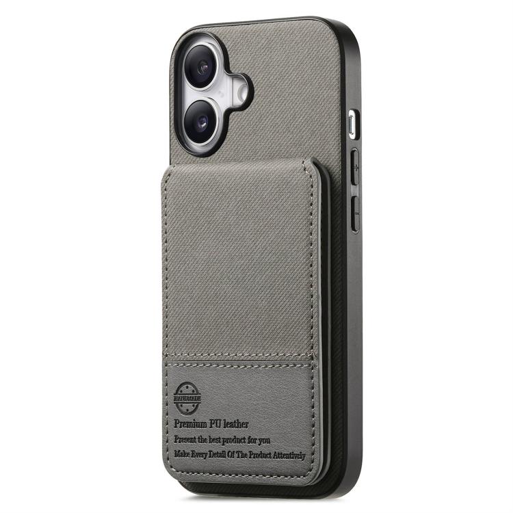 Funda para iPhone 17 de piel y sarga con tapa vertical RFID y tarjetero (gris)
