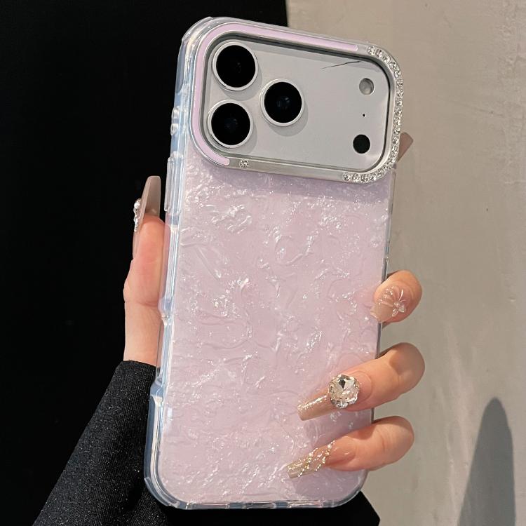 Funda para iPhone 17 Pro Max con diseño dorado y colorido, fabricada en TPU+IMD (morada).