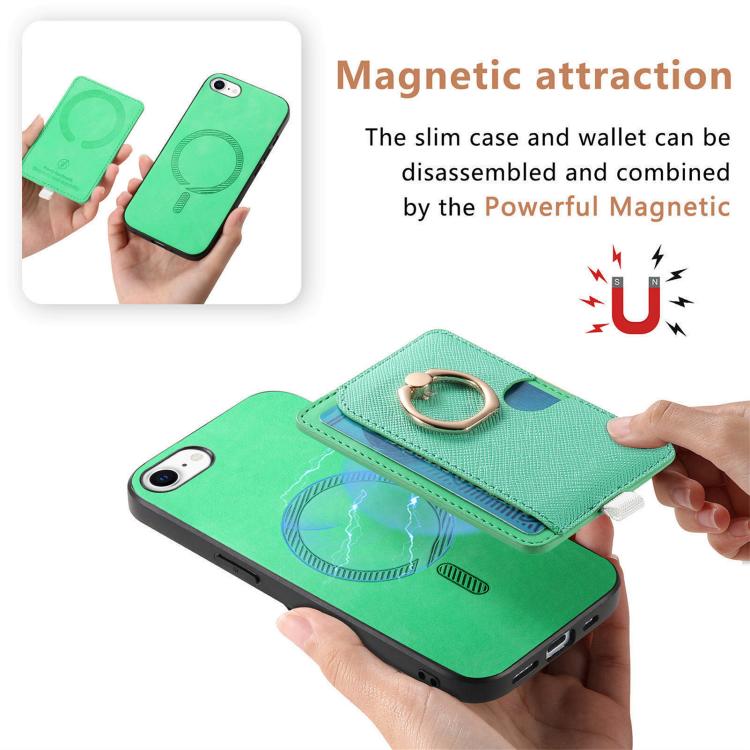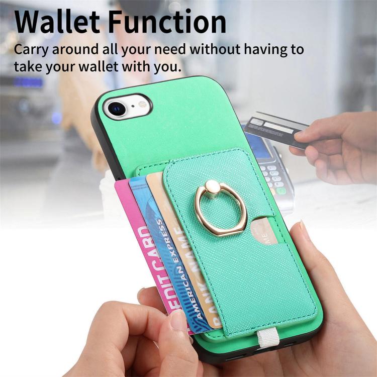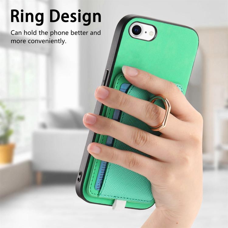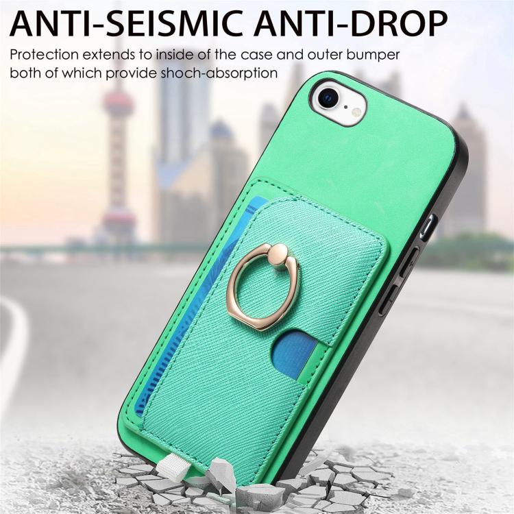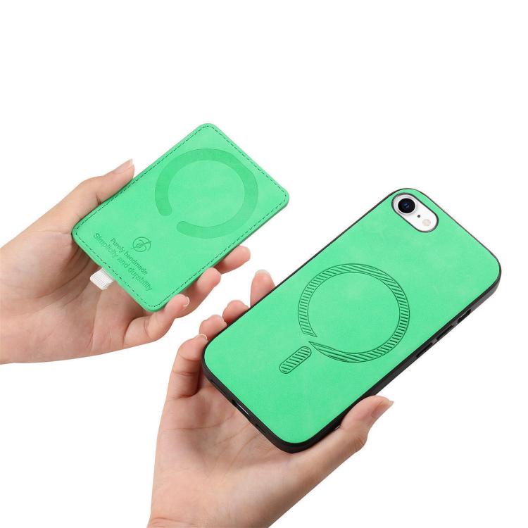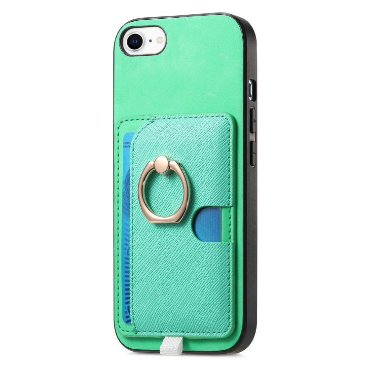 Funda para iPhone 7/8/SE 2022 con Ranuras para Tarjetas Diseño Retro Cruz Cuero (Verde)