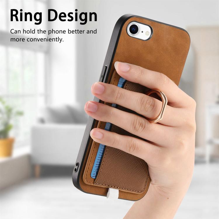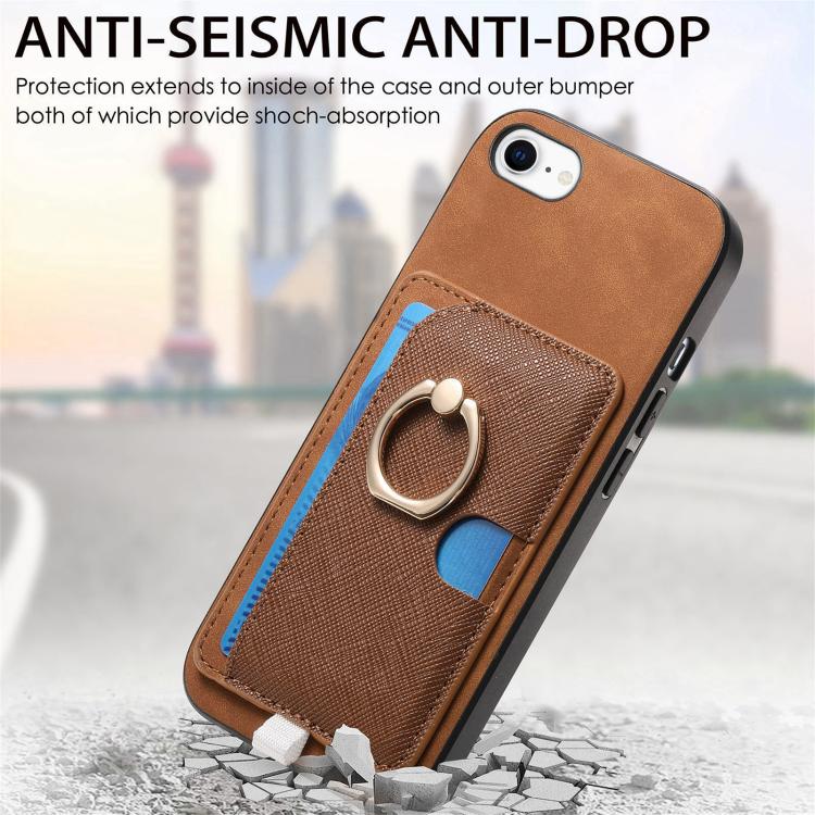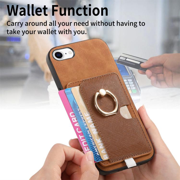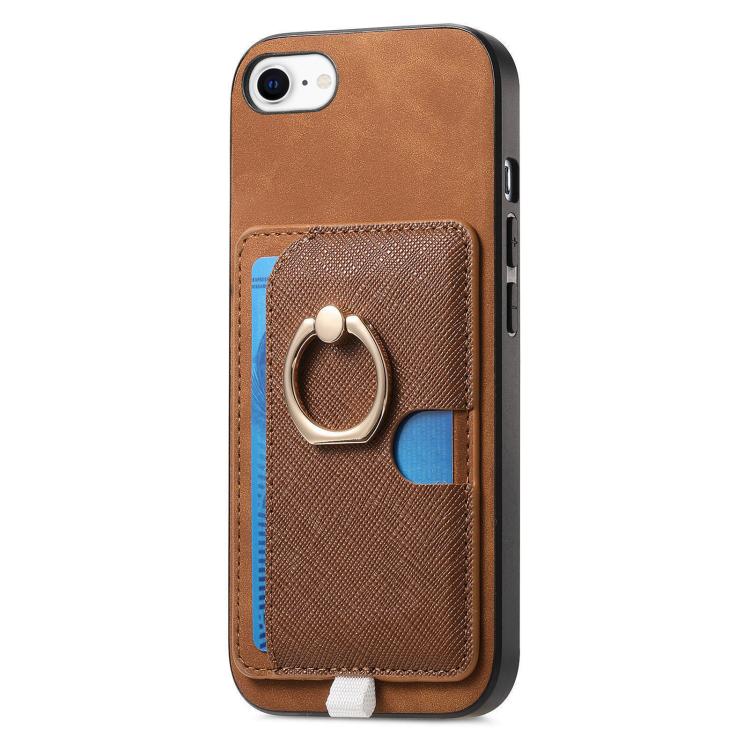 Funda para iPhone 7/8/Se 2022 con Ranuras para Tarjetas Diseño Retro Cruz Anillo Lateral (Marrón)