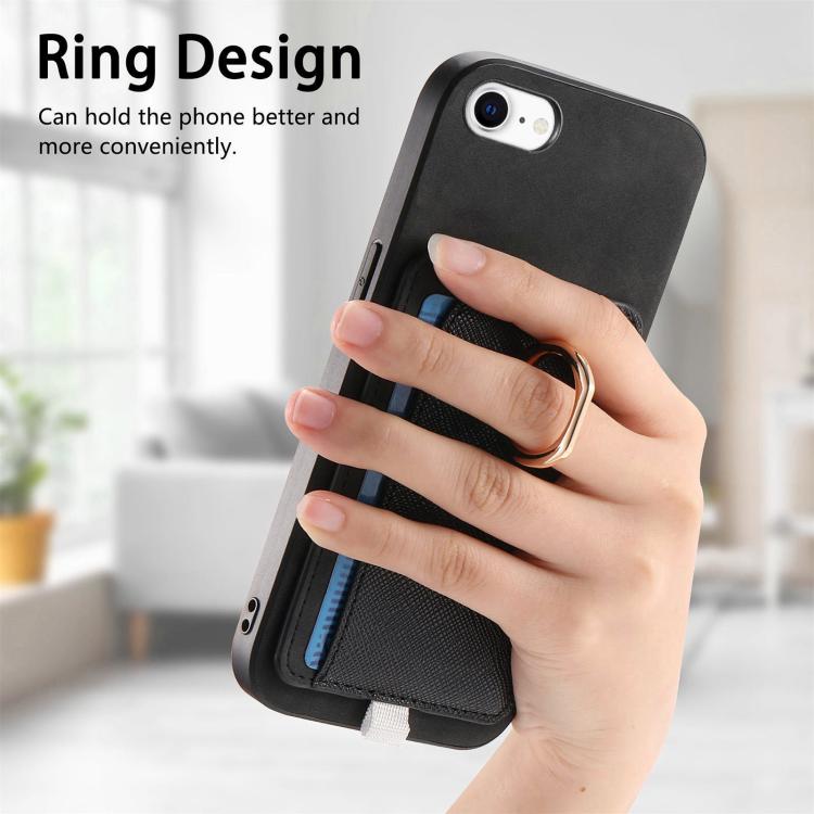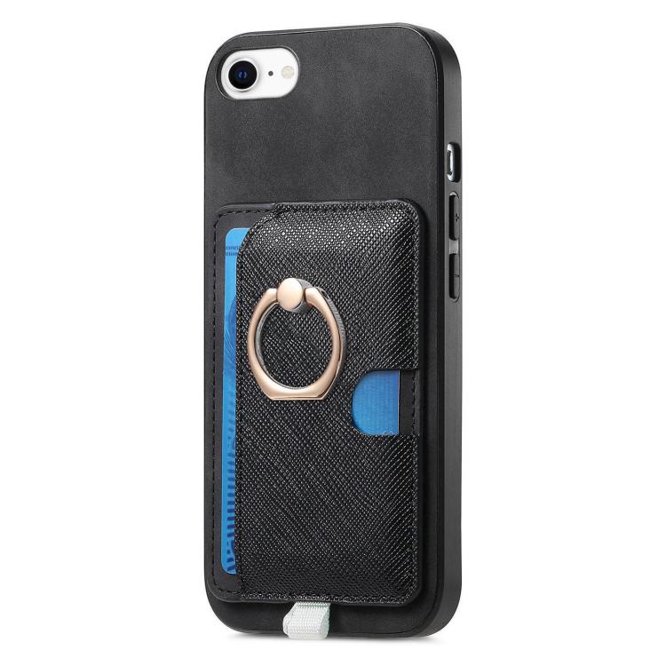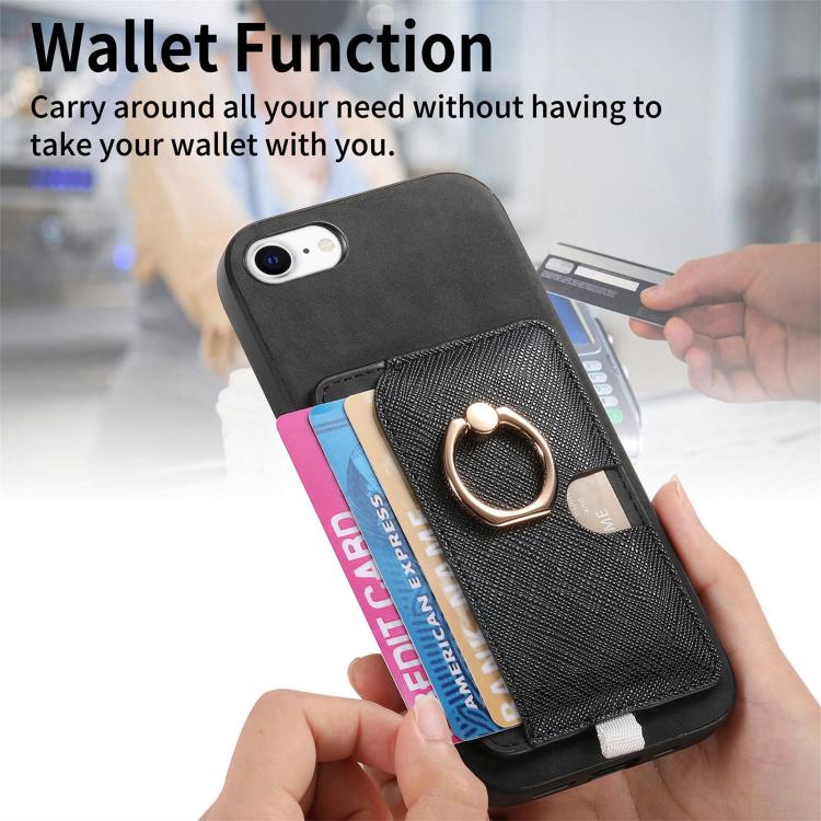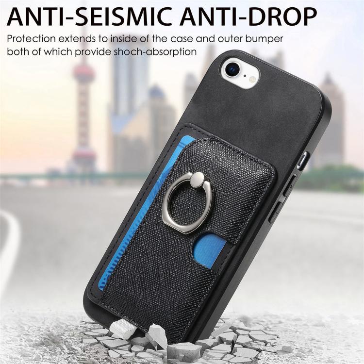 Funda para iPhone 7/8/Se 2022 con Ranuras para Tarjetas Diseño Retro Cruz Anillo Lateral (Negro)