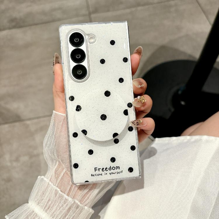 Funda para Samsung Galaxy Z Fold5 con diseño de puntos brillantes y soporte (blanca)