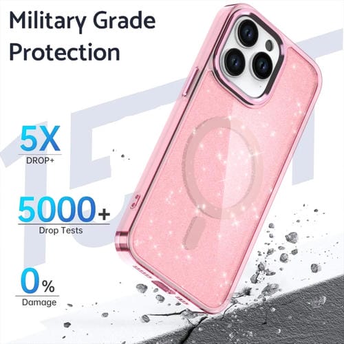 Funda para Teléfono Apple iPhone 13 Pro Max a Prueba de Golpes con Purpurina Magsafe (Rosa)