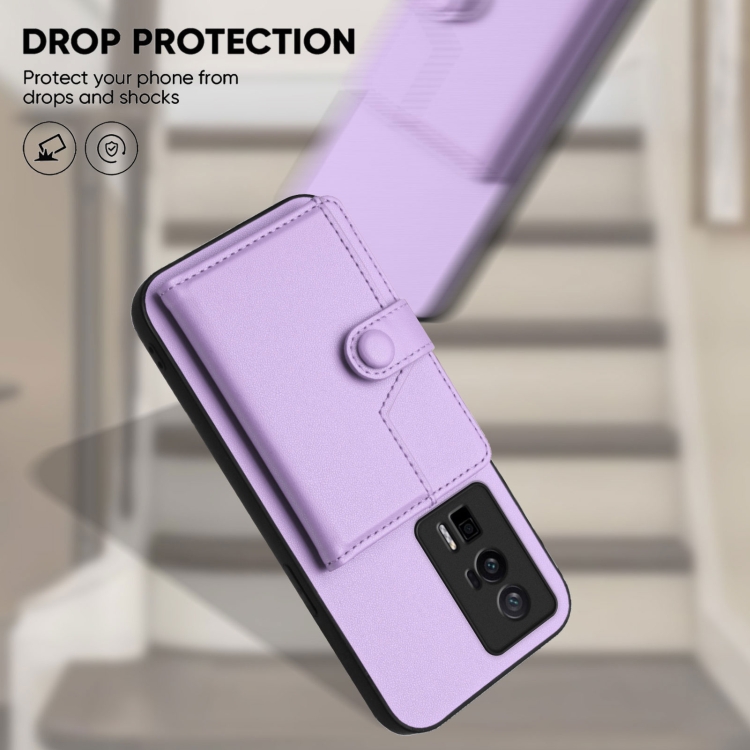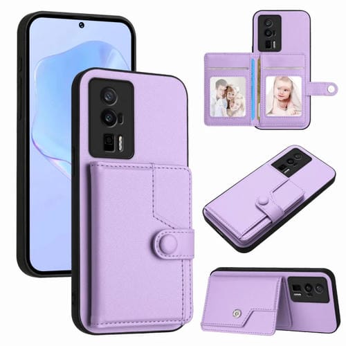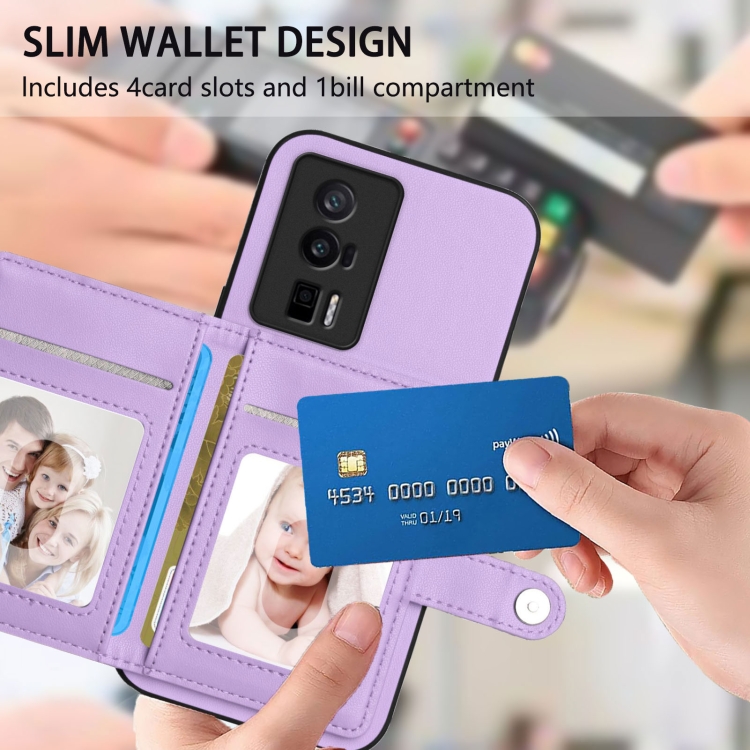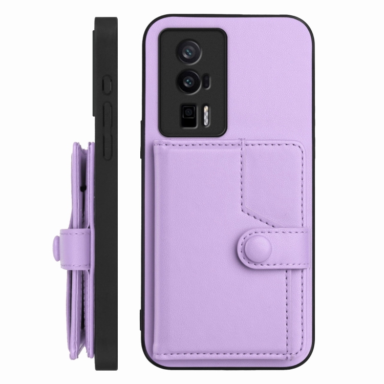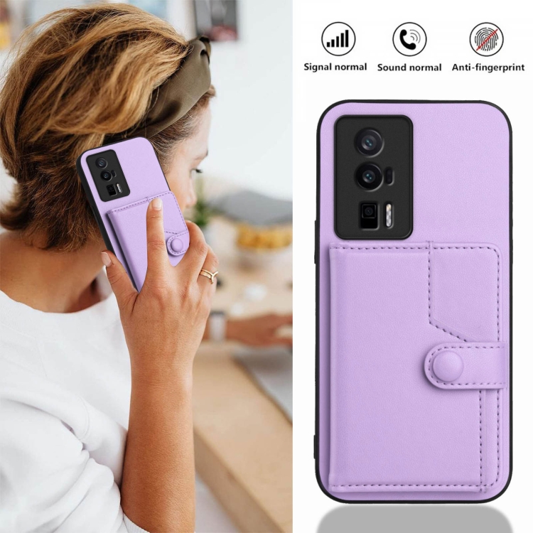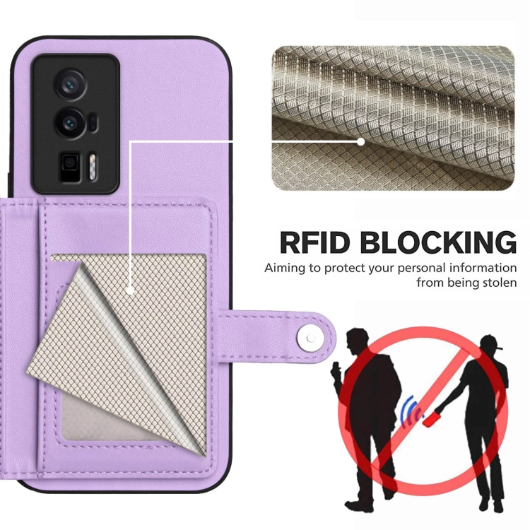 Funda para Teléfono Antirrobo con Botón y TaRJetero Rfid para Redmi K60/K60 Pro (Morado)