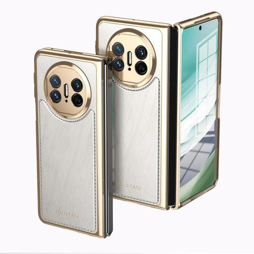 Funda para Teléfono Huawei Mate X3 con Baño de Brocado Plateado y Alambre Dorado (Blanca)