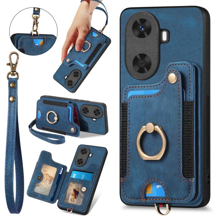 Funda Teléfono Huawei Enjoy 60 con Billetera MultiTarjeta Piel Sintética Anillo (Azul)