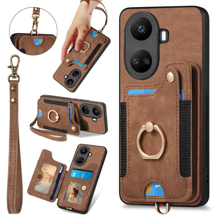 Funda para Teléfono Huawei Nova 10 Se con Billetera MultiTarjeta y Anillo (Marrón)