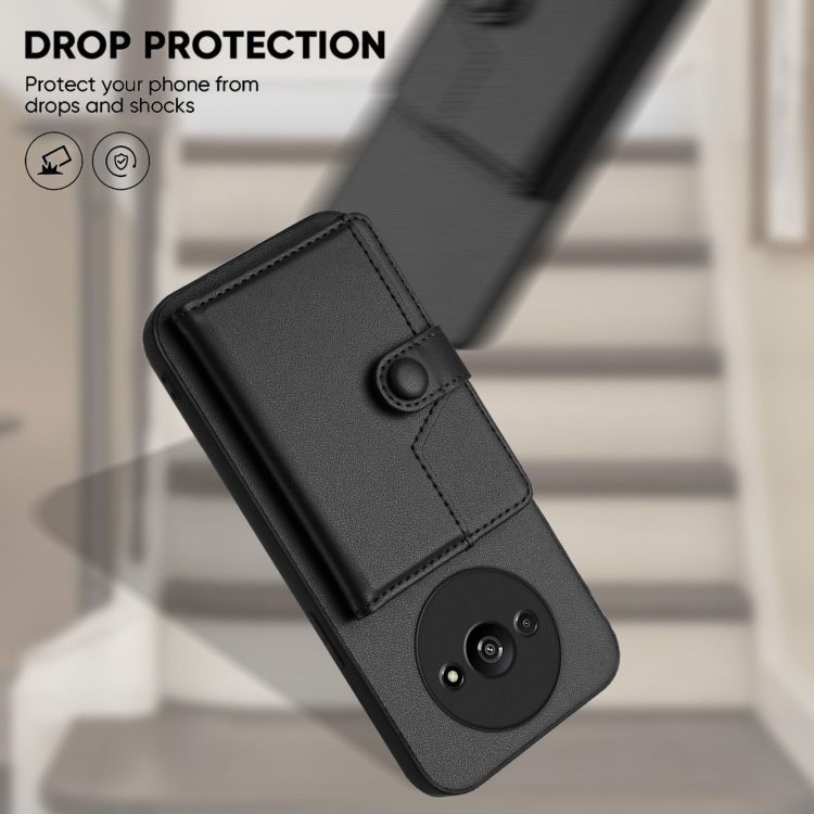 Funda para Teléfono con Botón y Tarjeta Rfid Antirrobo para Redmi A3 4G (Negra)