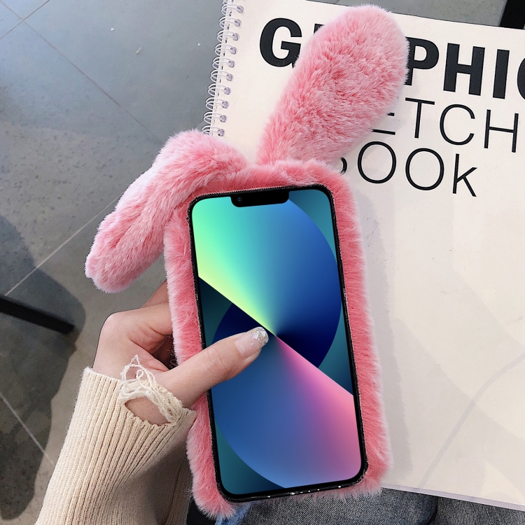 Funda para Teléfono iPhone 13 Cobertura Total Conejo Orejas Largas 3D (Rosa)