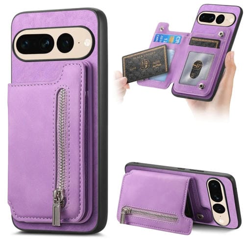 Funda para Teléfono con Cremallera Magsafe Retro para Google Pixel 7 Pro (Morado)