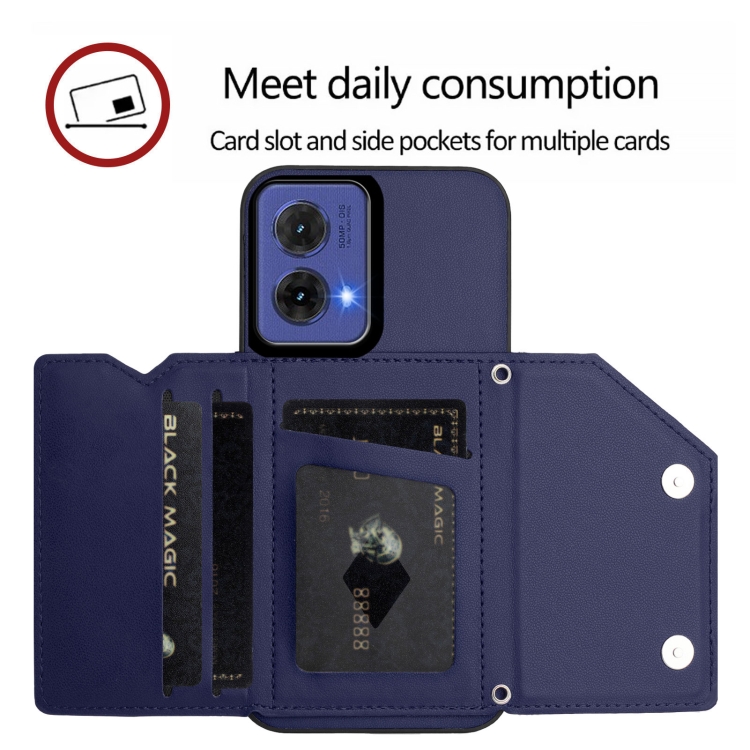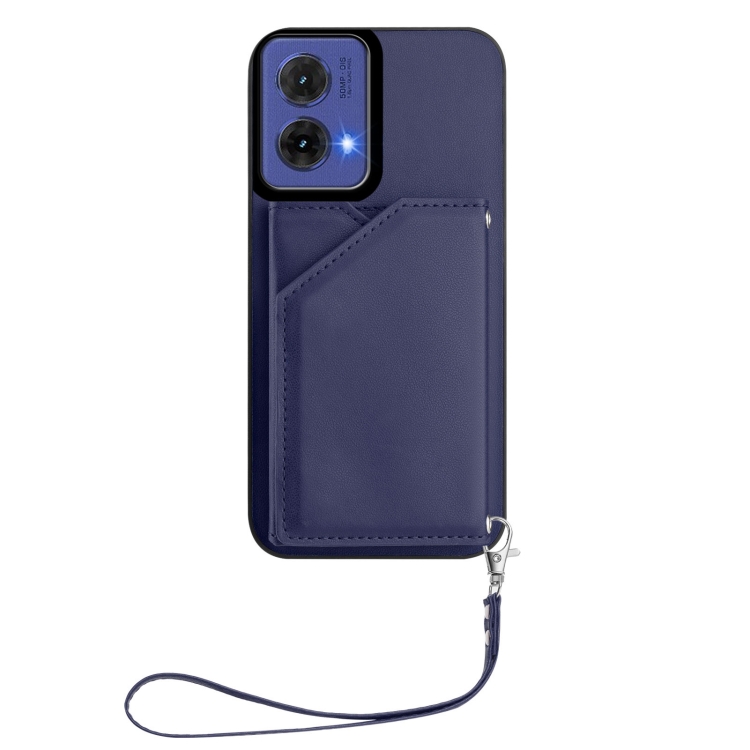 Funda para Motorola S50 Neo Skin Feel con 4 Ranuras para Tarjetas y Correa para Muñeca (Azul)