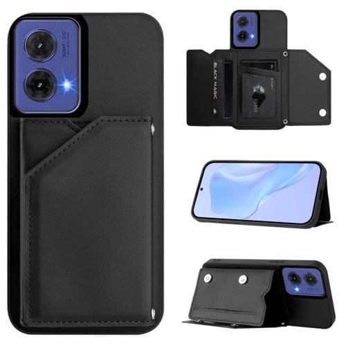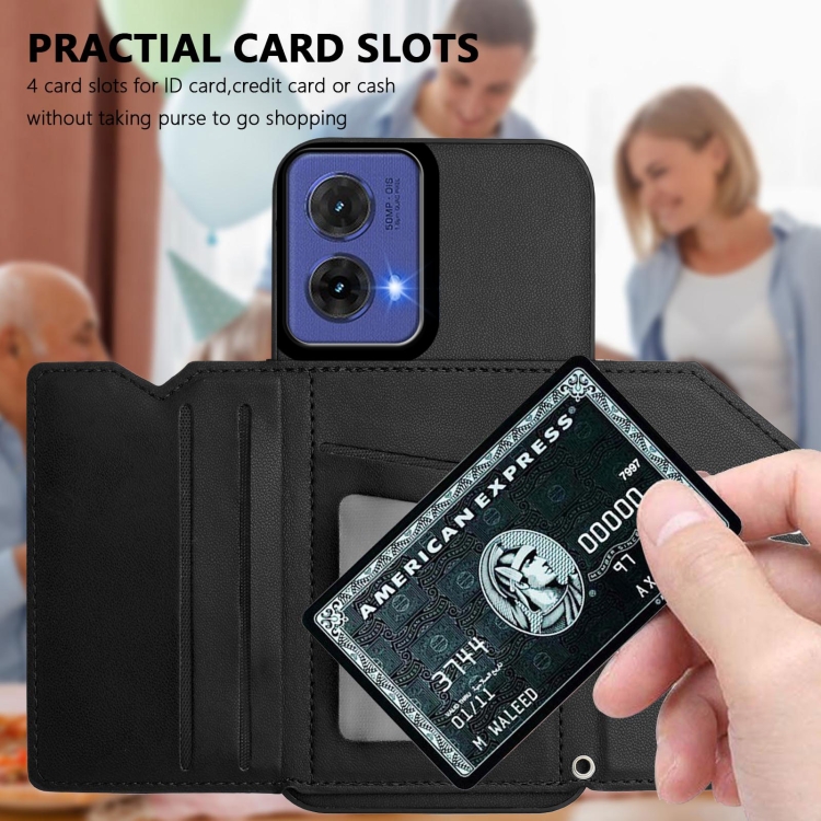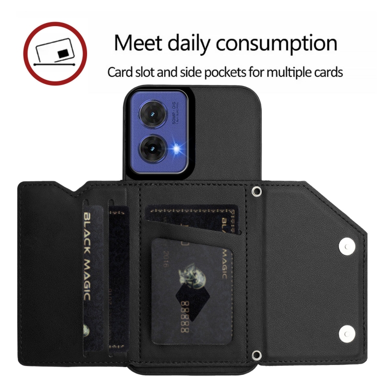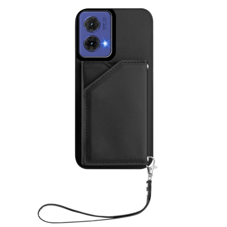 Funda para Teléfono Motorola S50 Neo Skin Feel con 4 Ranuras para Tarjetas y Correa para Muñeca (Negra)