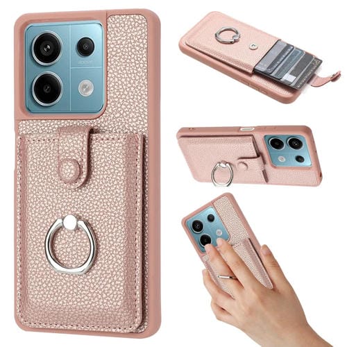 Funda para Teléfono con Diseño de Textura de Lichi para Redmi Note 13 5G, con Soporte para Anillo y Diseño de Tarjeta (Oro Rosa)