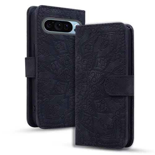 Funda para Teléfono Google Pixel 9 Pro XL Doble Pliegue Piel de Becerro Relieve Mandala (Negra)