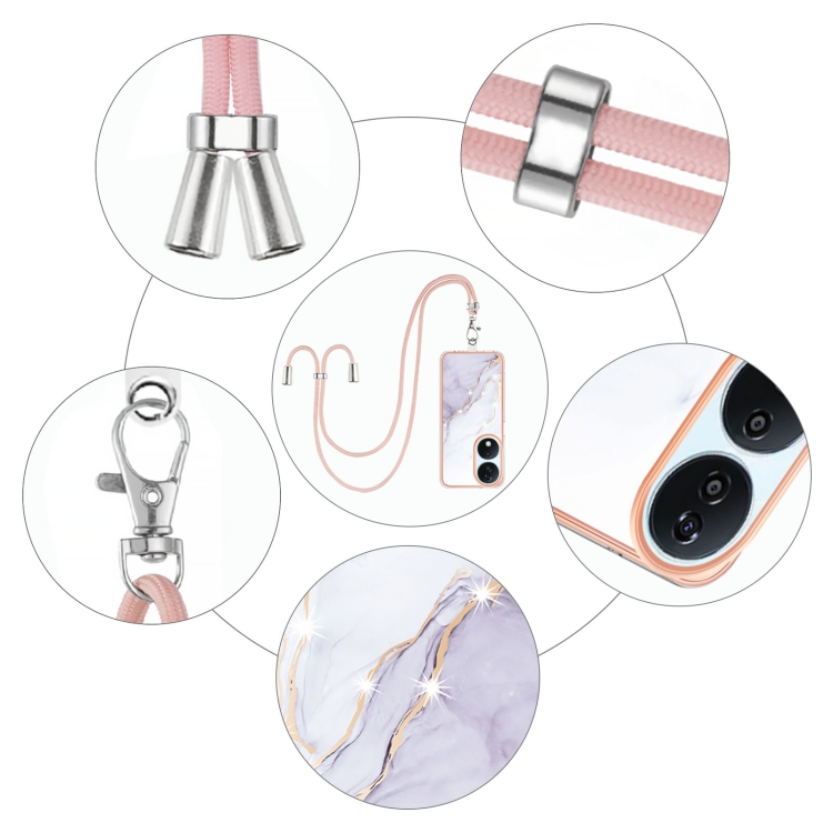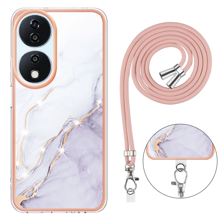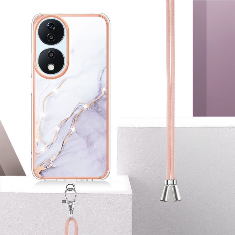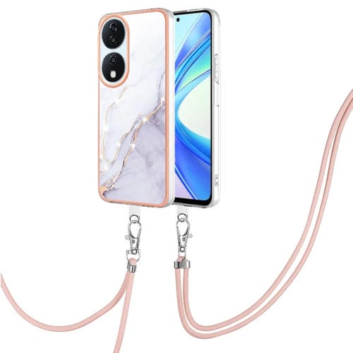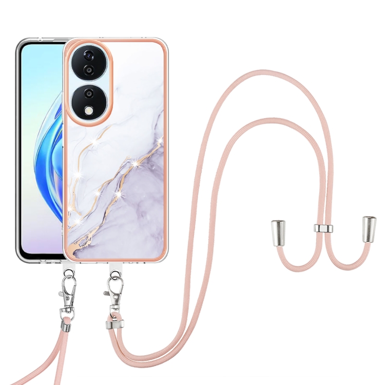 Funda para Teléfono Honor X7B 4G/5G con Imd Doble Cara Mármol Galvanizado y Cordón (Blanco)