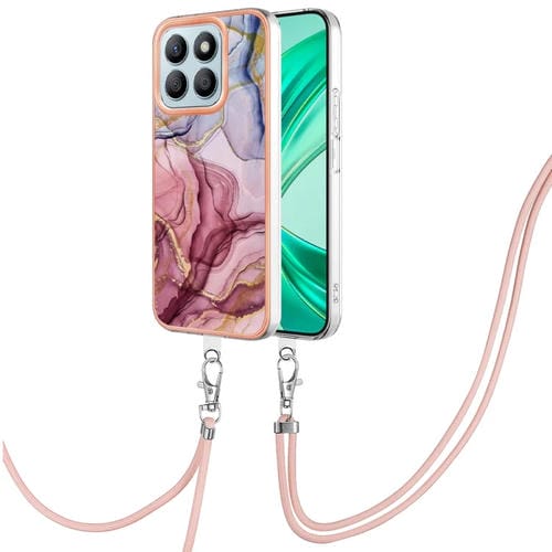 Funda para Teléfono Honor X8B con Imd Doble Cara Mármol Galvanizado y Cordón (Rojo Rosa)