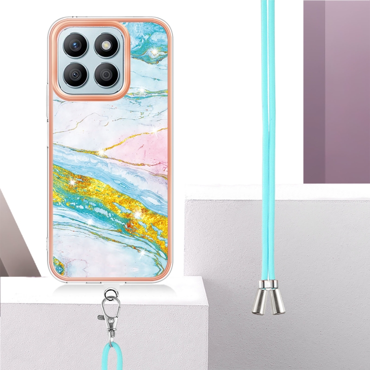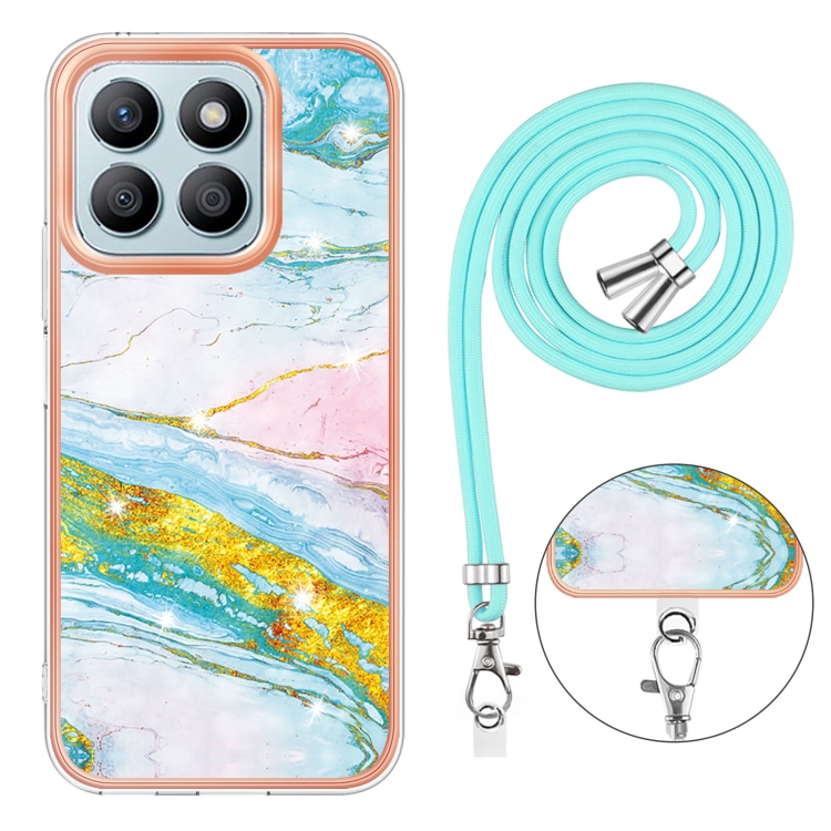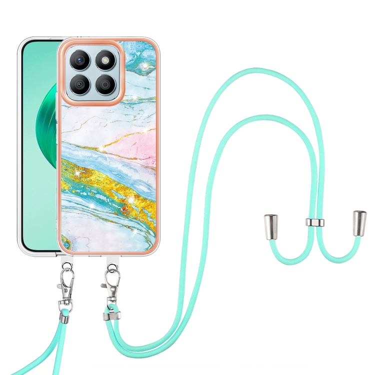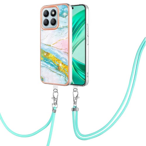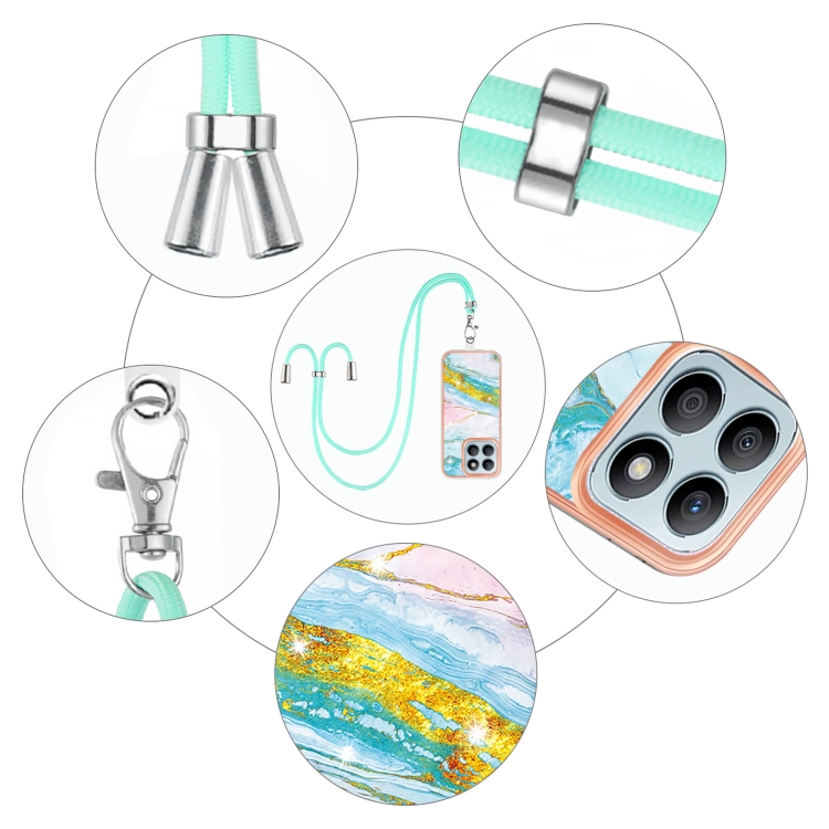 Funda para Teléfono Honor X8B con Imd Doble Cara y Revestimiento Mármol Galvanizado con Cordón (Verde)