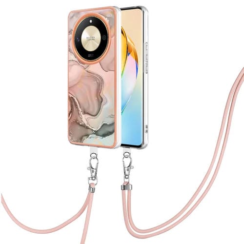 Funda para Teléfono Honor X9B con Imd Doble Cara y Revestimiento Mármol Galvanizado con Cordón (Oro Rosa)
