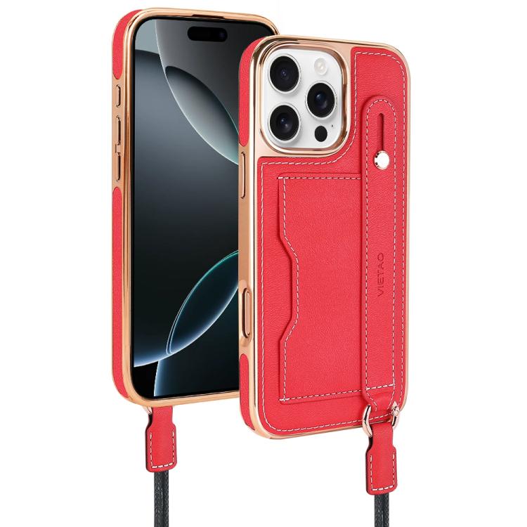 Funda para Teléfono Vietao iPhone 16 Pro Ranura para Tarjeta y Correa para Muñeca (Roja)