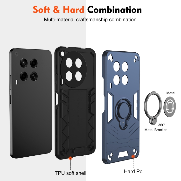 Funda para Teléfono Camshield Tecno Camon 30 4G con Soporte de Anillo (Azul Real)