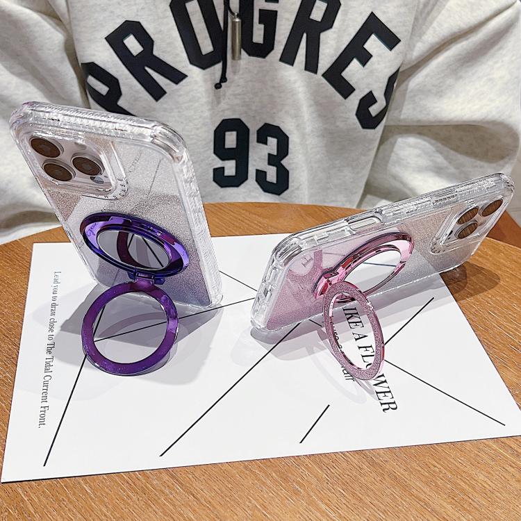 Funda para Teléfono Magsafe con Soporte Espejo y Purpurina para iPhone 16 Pro (Azul)