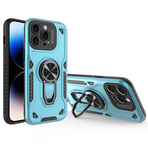 Funda para teléfono iPhone 14 Pro soporte giratorio metal TPU PC (Azul Brillante)