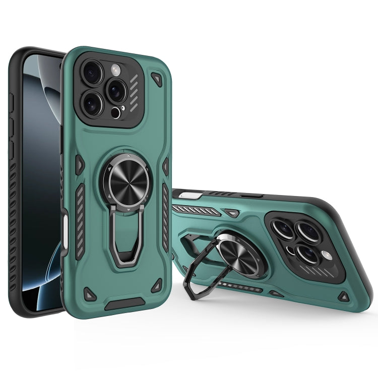 Funda para Teléfono iPhone 16 Pro Max Soporte Giratorio Metal TPU PC (Verde)