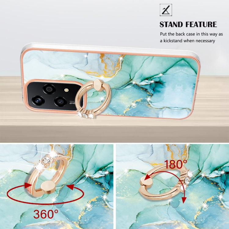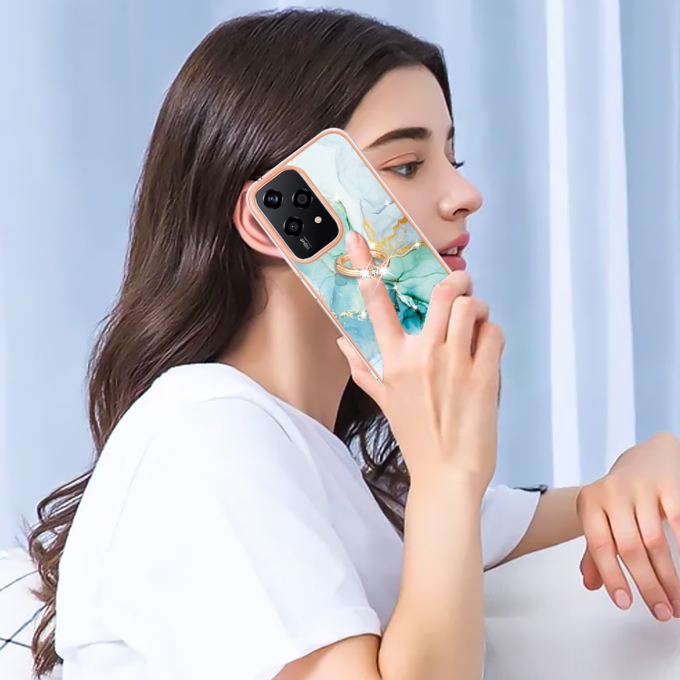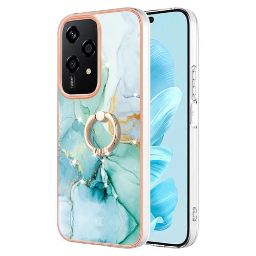 Funda para Teléfono Honor 200 Lite con Soporte Anillo Revestimiento Mármol Imd TPU (Verde)