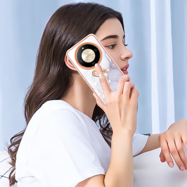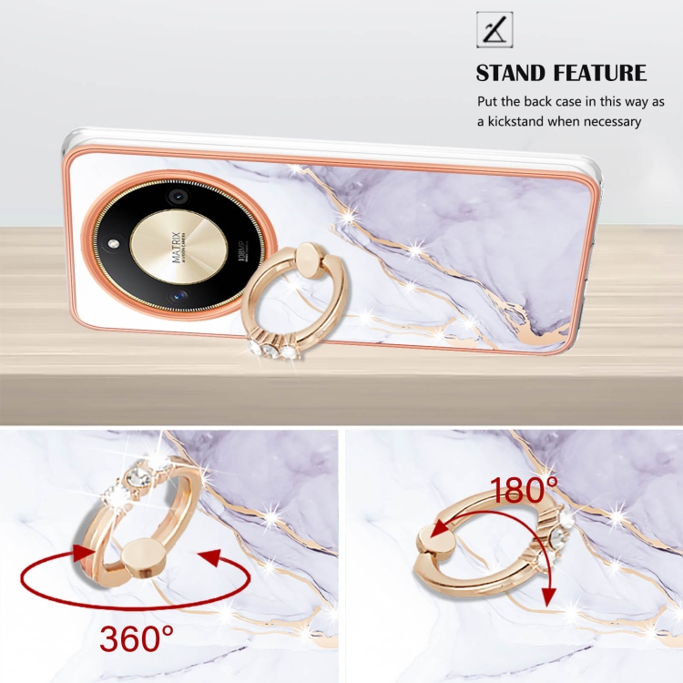 Funda para Teléfono Honor X9B con Soporte para Anillo Revestimiento Mármol TPU (Blanco)