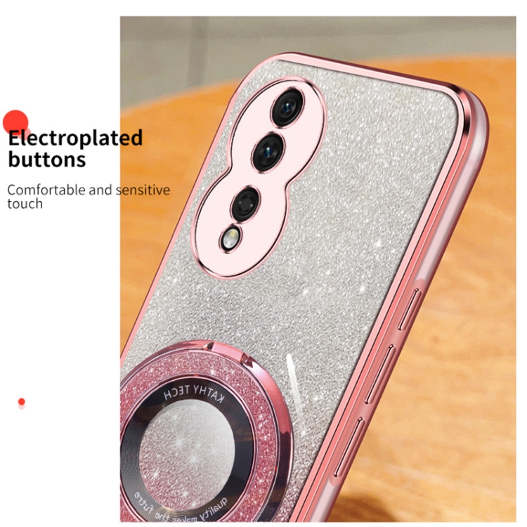 Funda para Teléfono Honor 80 TPU con Soporte Redondo y Purpurina Degradada (Rosa)