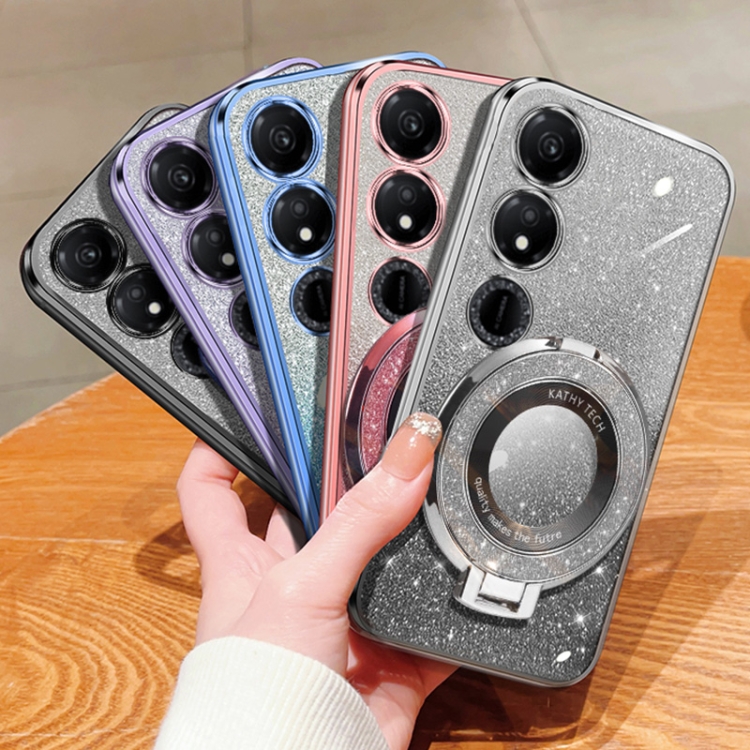 Funda para Teléfono Honor Play 40 TPU con Soporte Redondo y Purpurina Degradada (Morado)