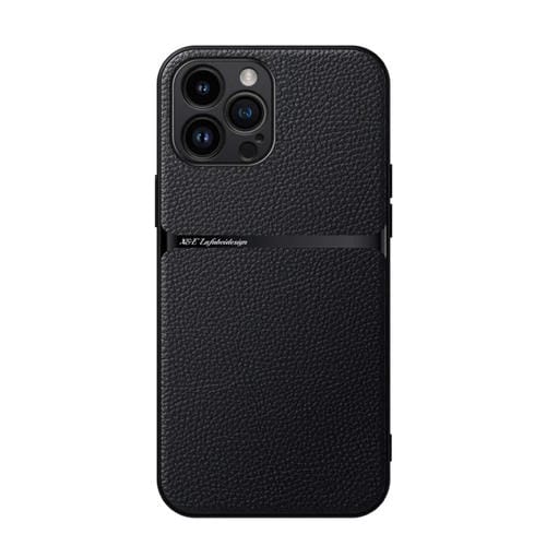 Funda para Teléfono iPhone 12 Pro Max con Tapa Magnética Piel de Lichi a Prueba de Golpes (Negra)